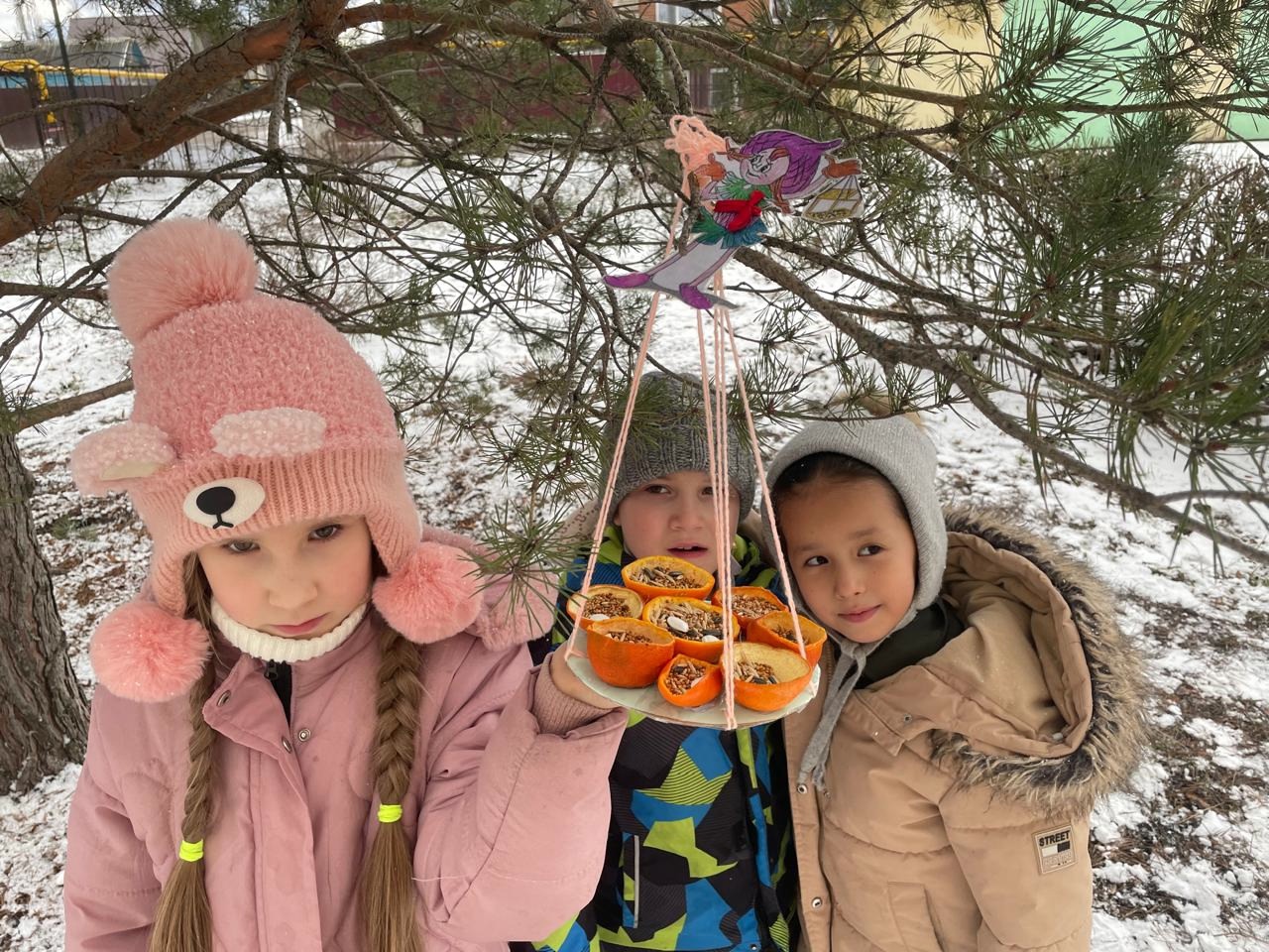 05.02.2025. Пора кормушек для птиц в разгаре. В садах и школах один конкурс кормушек следует за другим — только успевай делать и развешивать. Вот и наши ребята из объединения «Край родной» вместе с руководителем Карандеевой Аллой Владимировной решили сделать полезное дело: птиц подкормить и в конкурсе «Кормушка — игрушка» поучаствовать. ЭКО- кормушка — интересная идея! То есть, от неё не останется никаких следов в природе: что-то съедят, остальное разложится естественным образом. И ребята приступили к работе: разрезали тыкву так, чтобы нижняя часть была глубже верхней. Выскоблили мякоть, получили две части: одна — это емкость для корма, а другая – крыша. Затем взяли 4 деревянные палочки одинаковой длины. Проткнули боковинки, соединили с крышей и кормушка готова! Чтобы подвесить ее на дерево, сделали веревочный каркас. Осталось найти подходящую ветку дерева и привязать свою поделку. Но это было еще не все! Пришла идея изготовить еще одну кормушку из апельсиновых корочек. Птички были очень благодарны!